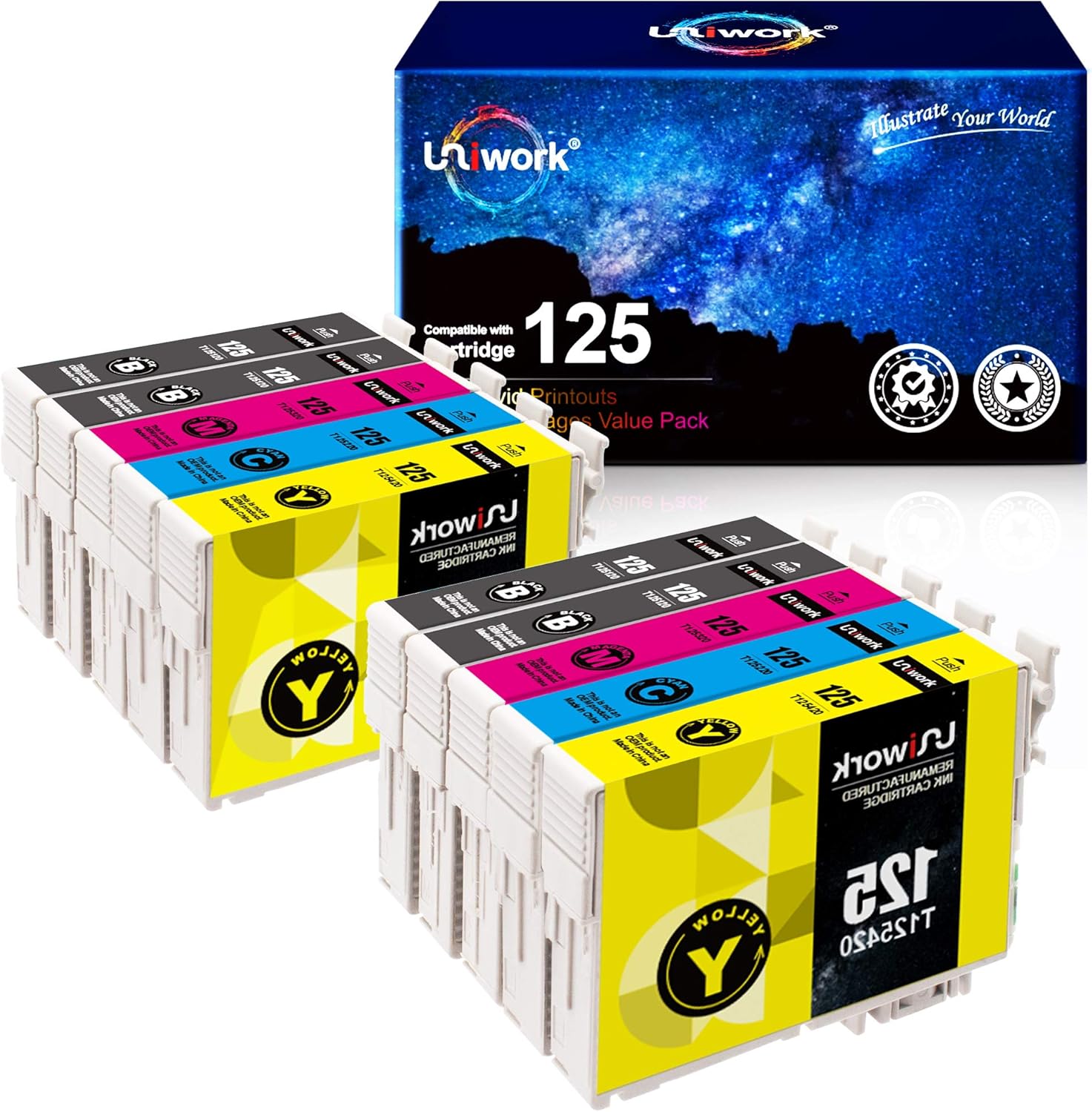 Professional reviews from industry experts Uniwork Remanufactured Ink Cartridge Replacement for Epson 125 T125 use for NX125 NX127 NX130 NX230 NX420 NX530 NX625 Workforce 320 323 325 520 Printer Tray (4 Black 2 Cyan 2 Magenta 2 Yellow 10 Pack