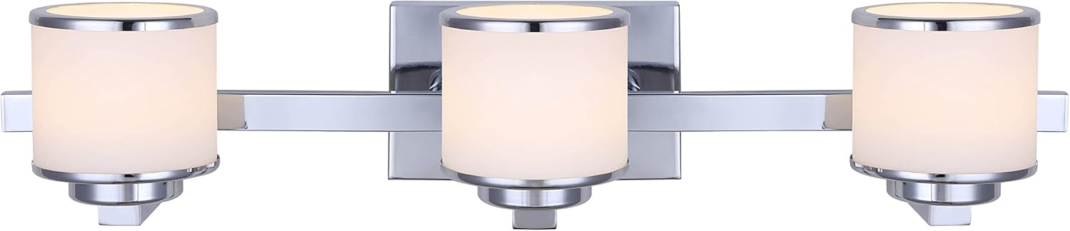 Can arm ltd LVL106A03CH style foster LED 3 light vanity chrome - the shimmering chrome finish brightens while the flat opal glass softens the look of this transitional vanity light. Featuring cylindrical, chrome rimmed glass shades, the foster is sure to add a touch of class to your decor. By utilizing energy efficient integrated LED technology, this fixture eliminates having to replace light bulbs, resulting in lower maintenance cost. The 30W foster provides 2150 lumens of 2700K soft white lighting for 25,000 hours. Ideal for over your bathroom mirror and is suitable for many bathroom applications. Can arm has a long and successful history of supplying lighting and ceiling fans. They work diligently to create a comprehensive selection of styles and designs as well as maintaining high standards of product quality and value.