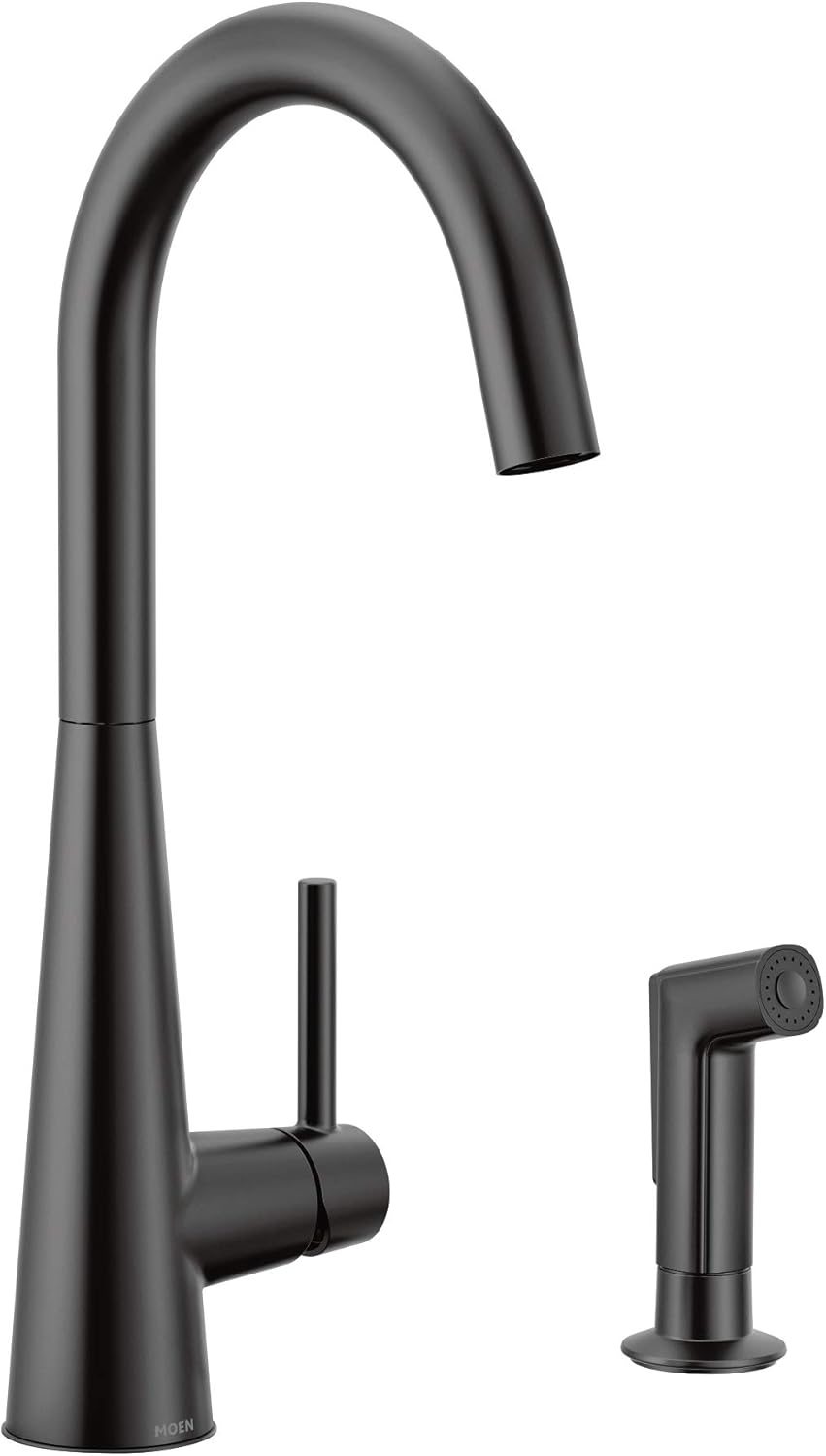 Review Moen 7870BL Sleek One-Handle High Arc Kitchen Faucet with Side Spray, Black Matte